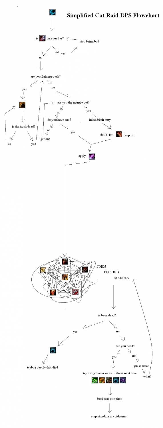 Rotation: Basically the main thing to do is, keep bleeds up and then simply shred. Rake should be active all the time, and your 5 combo points (cb) rip. You always should start with mangle, having Improved Mangle 3/3 is not a neccesity, considering the fact you only use it for the extra dmg on bleeding effects. So mangle, to keep the mangle effect up, savage roar, to boost your bleed damage, and rake, rip, and then you keep shredding until the bleeds are going off again. Keep all the above mentioned abillities up. Some druids tend not to use Savage Roar. I personally use it. If you have any energy left overs, after you're rotation, you could pull off a quick ferocious bite, and then use tiger's fury to get back on rotation. Or use Ferocious Bite at the end of berserk.